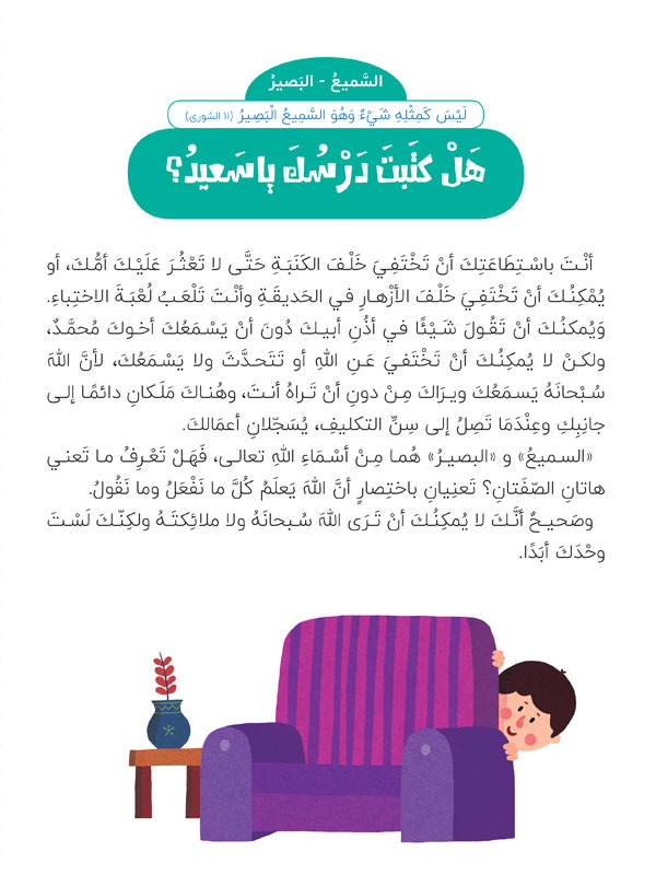 يفهم الطفل أن أسماء الله صفات فاعلة تؤثّر في حياته.